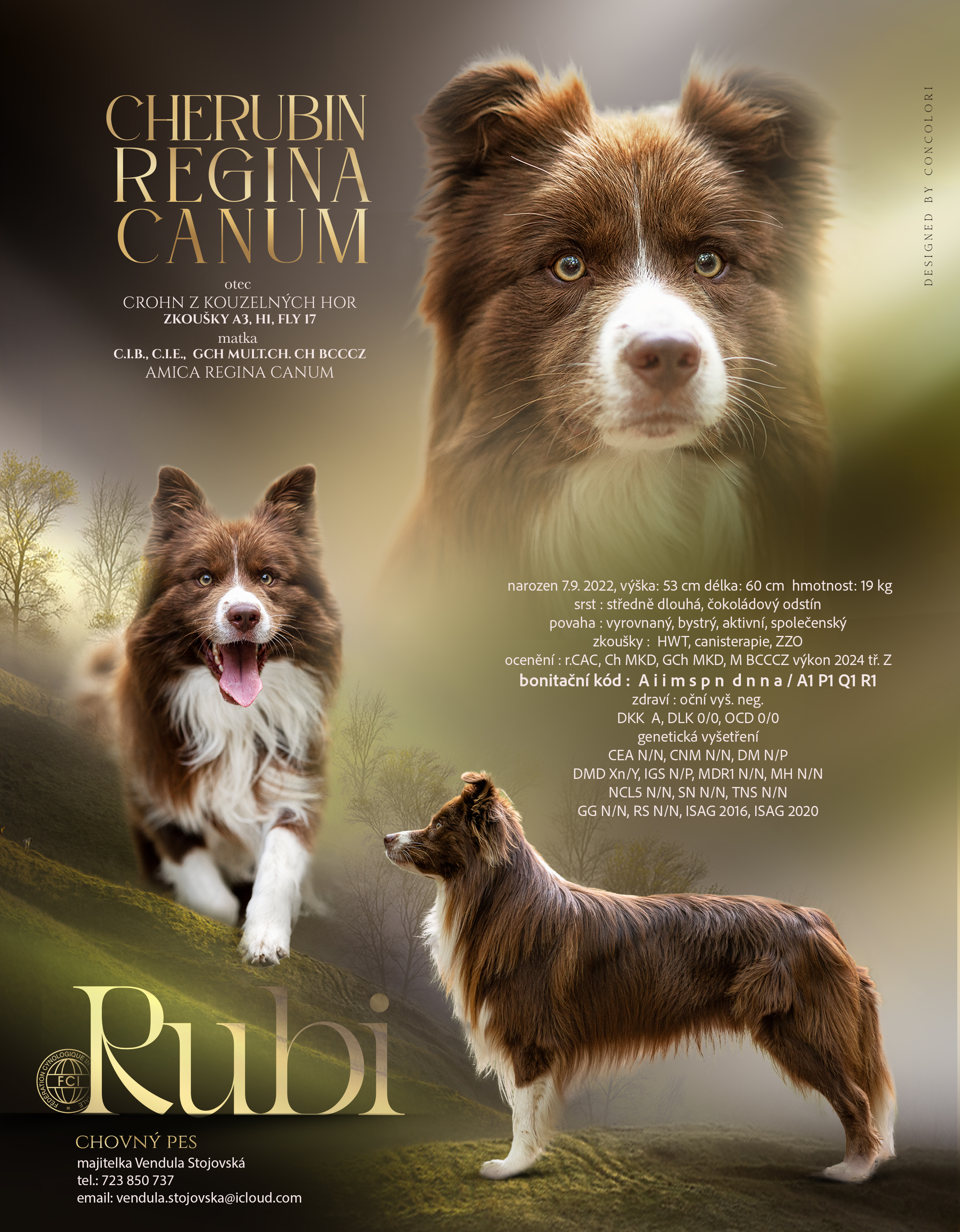 Genetické testy: CEA N/N, CNM N/N, DM N/N, DMD Xn/Y, IGS N/N, MDR1 N/N, NCL5 N/N, SN N/N, TNS N/N, GG N/N, RS N/N
